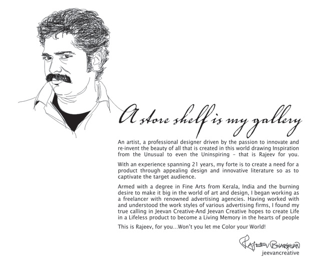 In a crowded marketplace it is essential to ensure that your products stand out from the rest of the pack. Our packaging design philosophy is evolved with this objective in mind. We strive to develop package that enhances the positive attributes of the product by invoking association with freshness, beauty and nature. Our in-depth knowledge of manufacturing processes provides real solutions you can count on. From concept through production we can take charge of part or all of your package design project. Along with our production resources we at jeevan creative use years of experience to provide you with superior service and value. We offer you package and display design ideas that will grab the shopper's attention and motivate the customer to buy your products.
